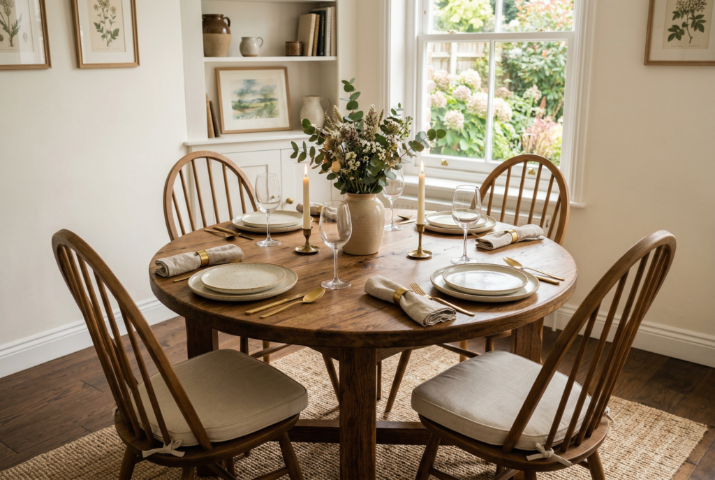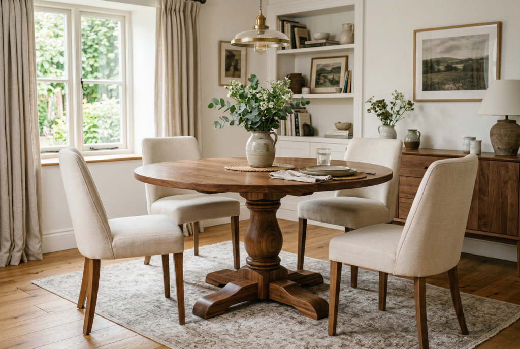 A round dining table is one of the smartest choices for smaller dining areas, breakfast nooks, or open-plan homes where circulation matters. Without sharp corners, it creates a softer visual effect and often makes it easier to move around the room. That alone can make the space feel less cramped.