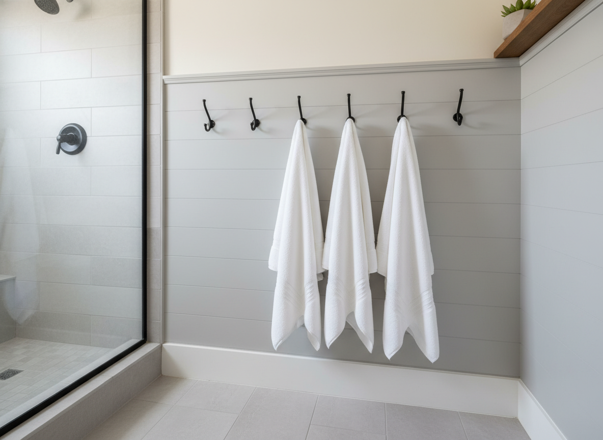 These days people prefer hooks because they make life easier, especially for kids, guests, and tired adults. Unlike towel bars that require folding and precision, hooks let towels be tossed up quickly, which means they actually get used. Smart placements include behind the bathroom door, beside the shower, or along a narrow wall strip where space is limited. This one small change can dramatically reduce towel piles and make your bathroom feel more manageable almost overnight.