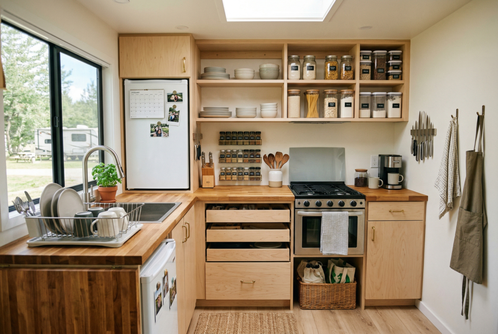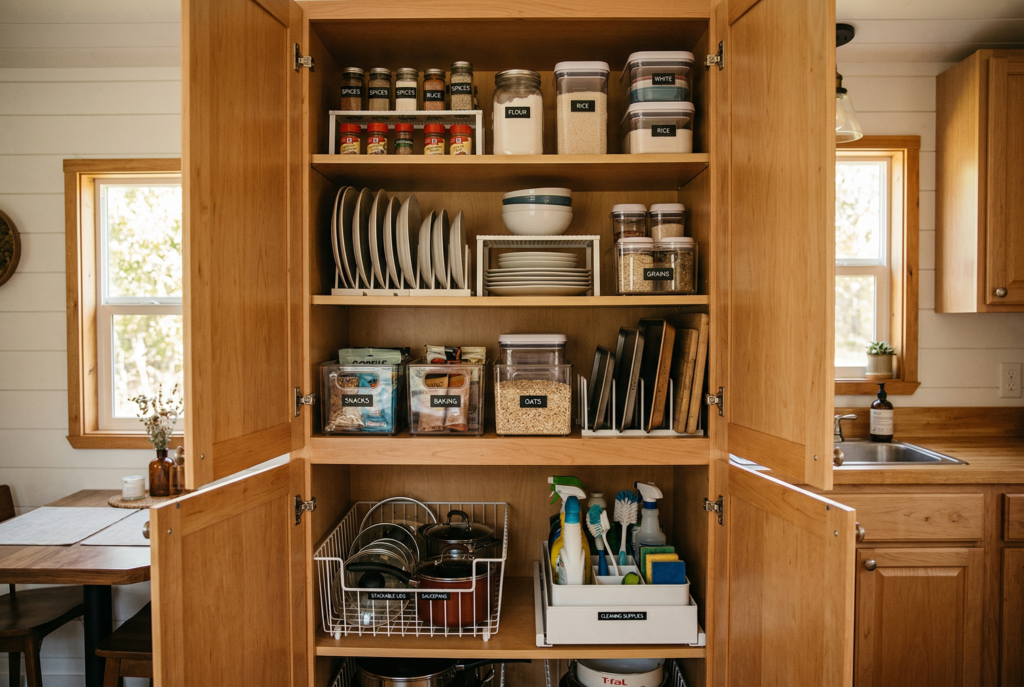 Mobile home kitchens often have limited counter space and not enough room for clutter inside cabinets. That’s why cabinet organization matters just as much as what sits on the counters. Instead of trying to fit more into the kitchen by adding external storage, it usually works better to improve how existing cabinets function.