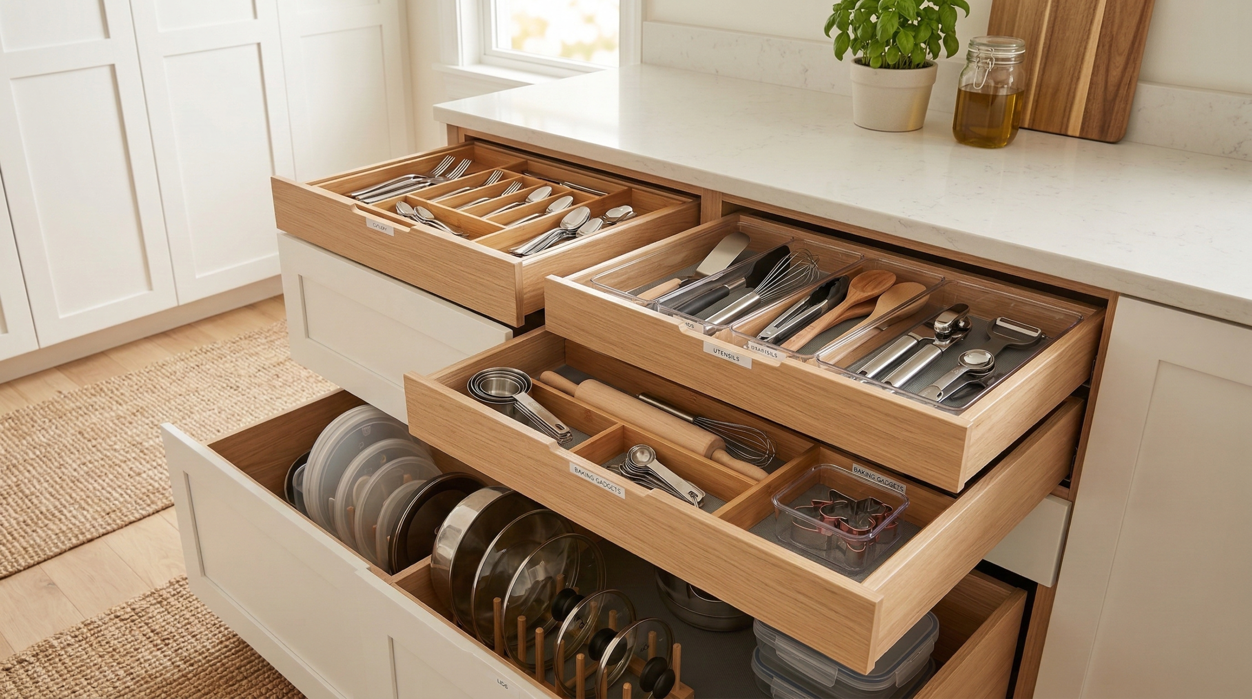 Using drawer dividers is one of the simplest and most effective ways to organize. Dividers break the drawer into smaller compartments, which helps prevent everything from getting jumbled together. For kitchen drawers, dividers can help you separate utensils from knives, or spoons from measuring spoons. You can find adjustable dividers that fit various drawer sizes, or you can repurpose small boxes, like old tissue boxes or shoe boxes, to divide the space.