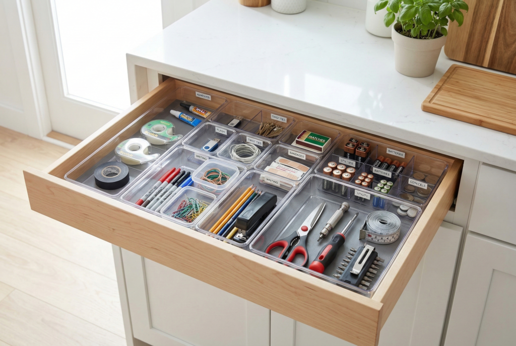 For junk drawers, group items into general categories like “tools,” “batteries,” “office supplies,” and “miscellaneous.” This will help prevent the drawer from becoming a catch-all, while still keeping everything accessible.