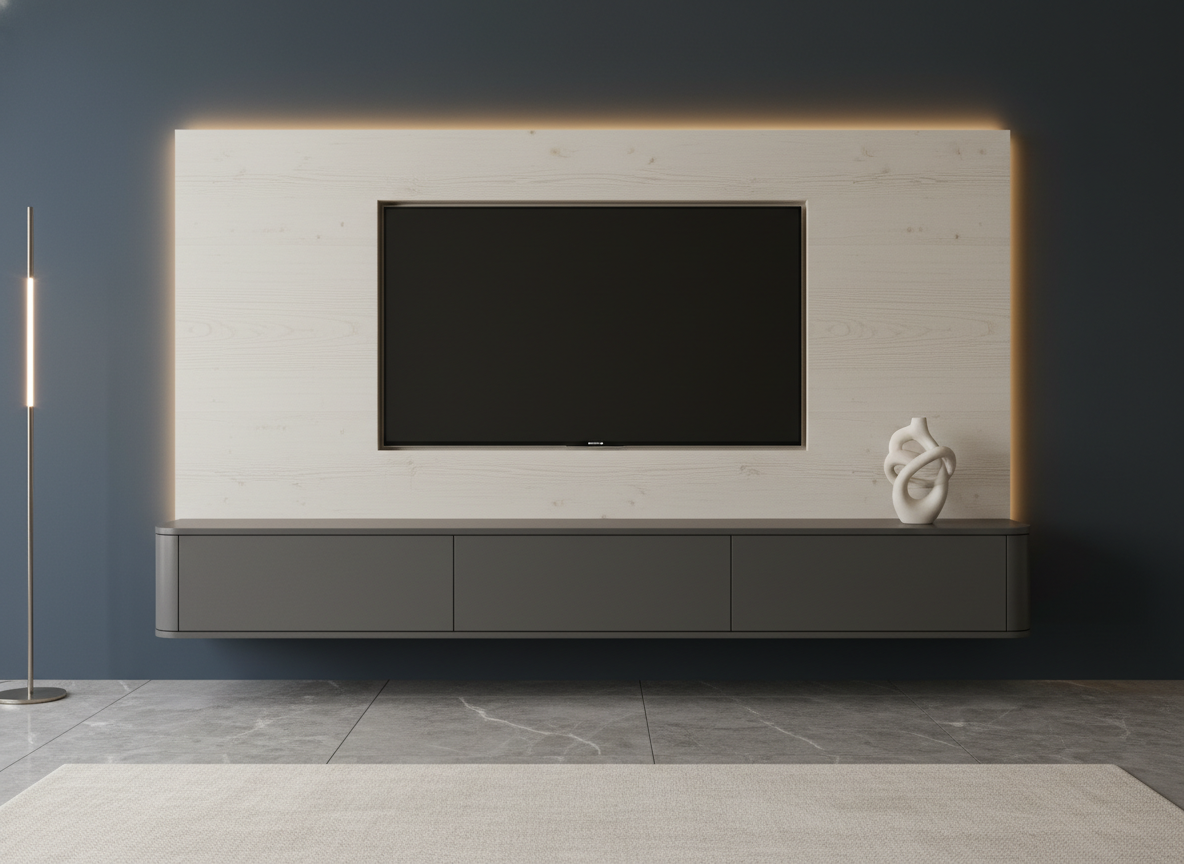 - Pick a slim floating media console