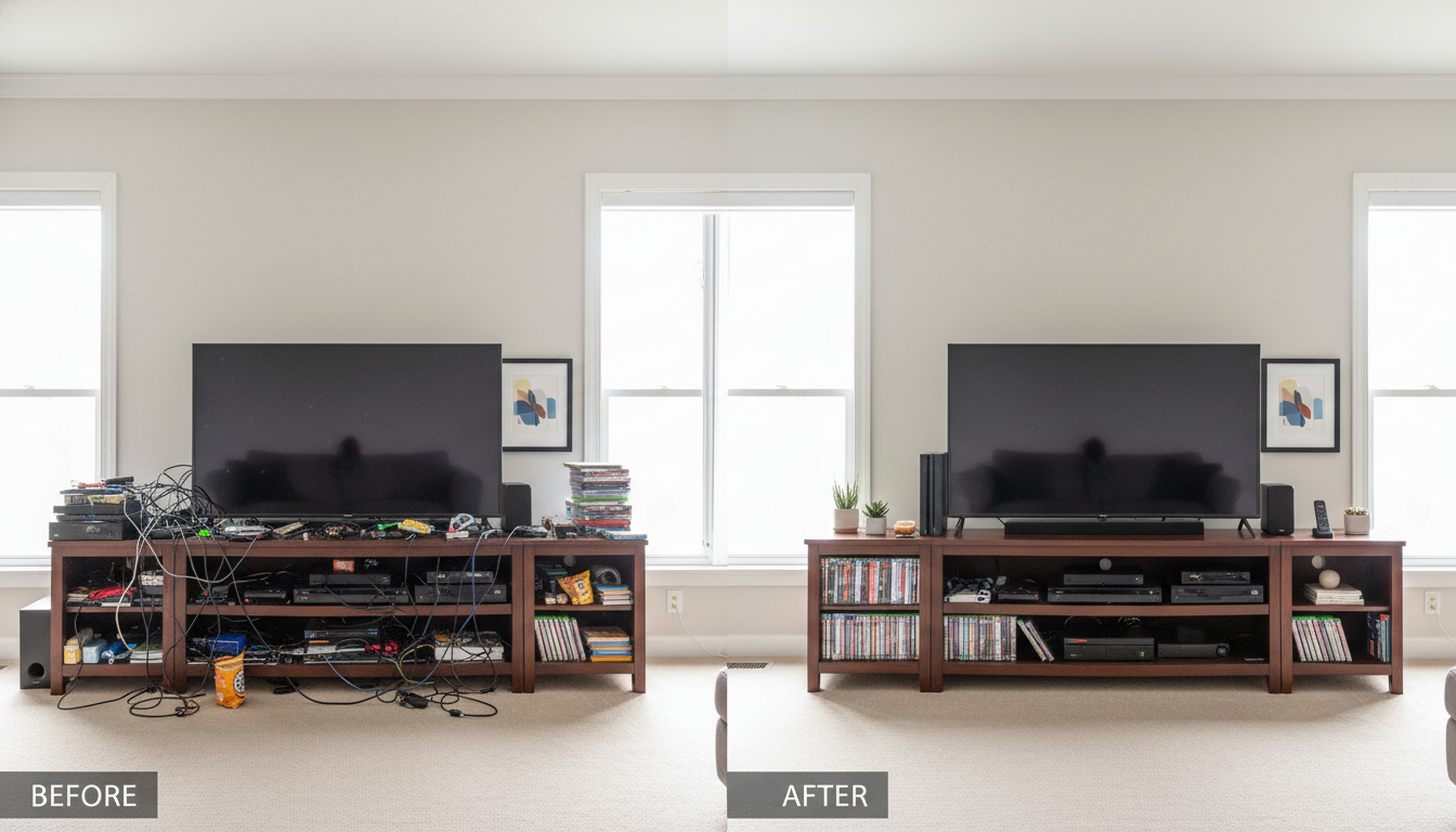 Your indoor family entertainment center should let you stream, enjoy game nights without hassles, and create happy moments with your family, not add extra mess.