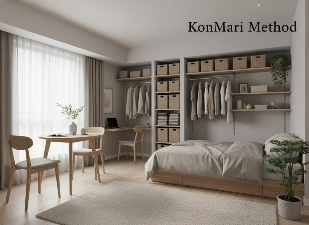 The KonMari Method is a decluttering and organizing system designed to help individuals tidy up their homes in a more mindful and intentional way. The method is centered around the idea that you should only keep items that spark joy in your life, making the tidying process both practical and emotional.