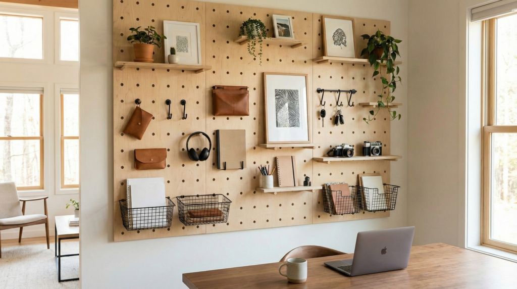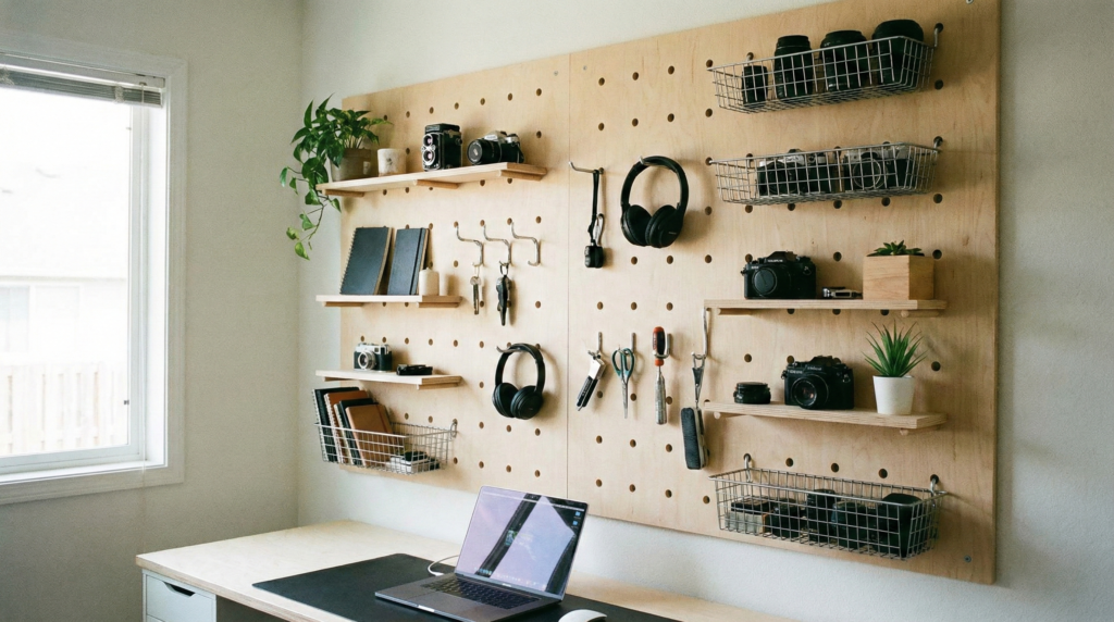 If you’re living in a smaller home, every inch of space is precious. Pegboards are an excellent way to maximize storage without taking up floor space. These versatile storage solutions are perfect for smaller rooms and apartments, where traditional storage may not fit.