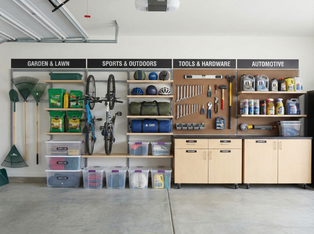 Once you’ve decluttered, start thinking about how to organize your garage based on its function. Are you using the garage as a workshop, a storage area, or a place to park your car?